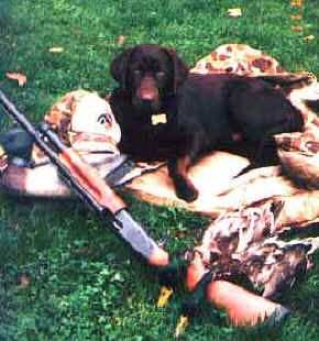 Merganser's Ruger with first duck retrieves (Merganser's Classic Matlock X Merganser's Hot Lips Hulahan SH) male pup, age 5 months. Ruger is owned by Barry Downie, Roseburg, OR.